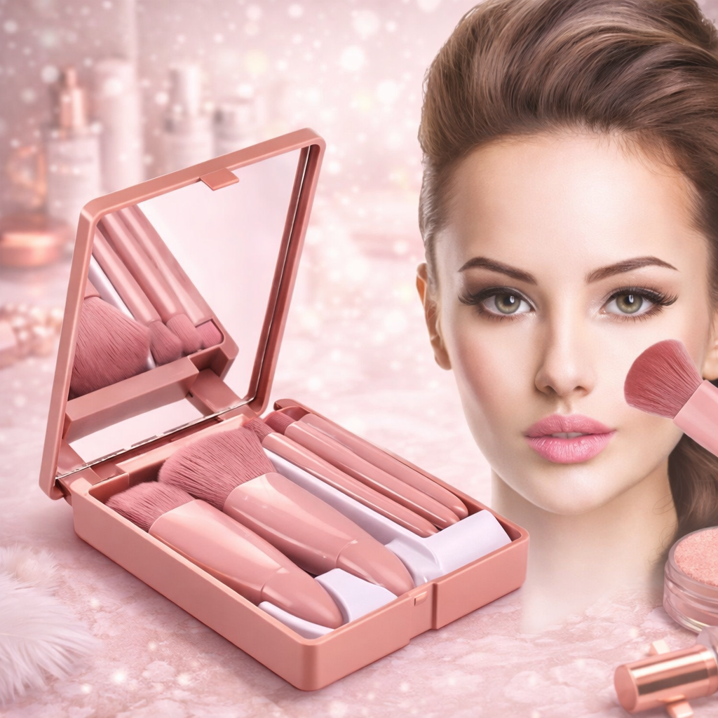 Set od 5 četkica za šminkanje sa ogledalom – Savršena šminka bilo gde